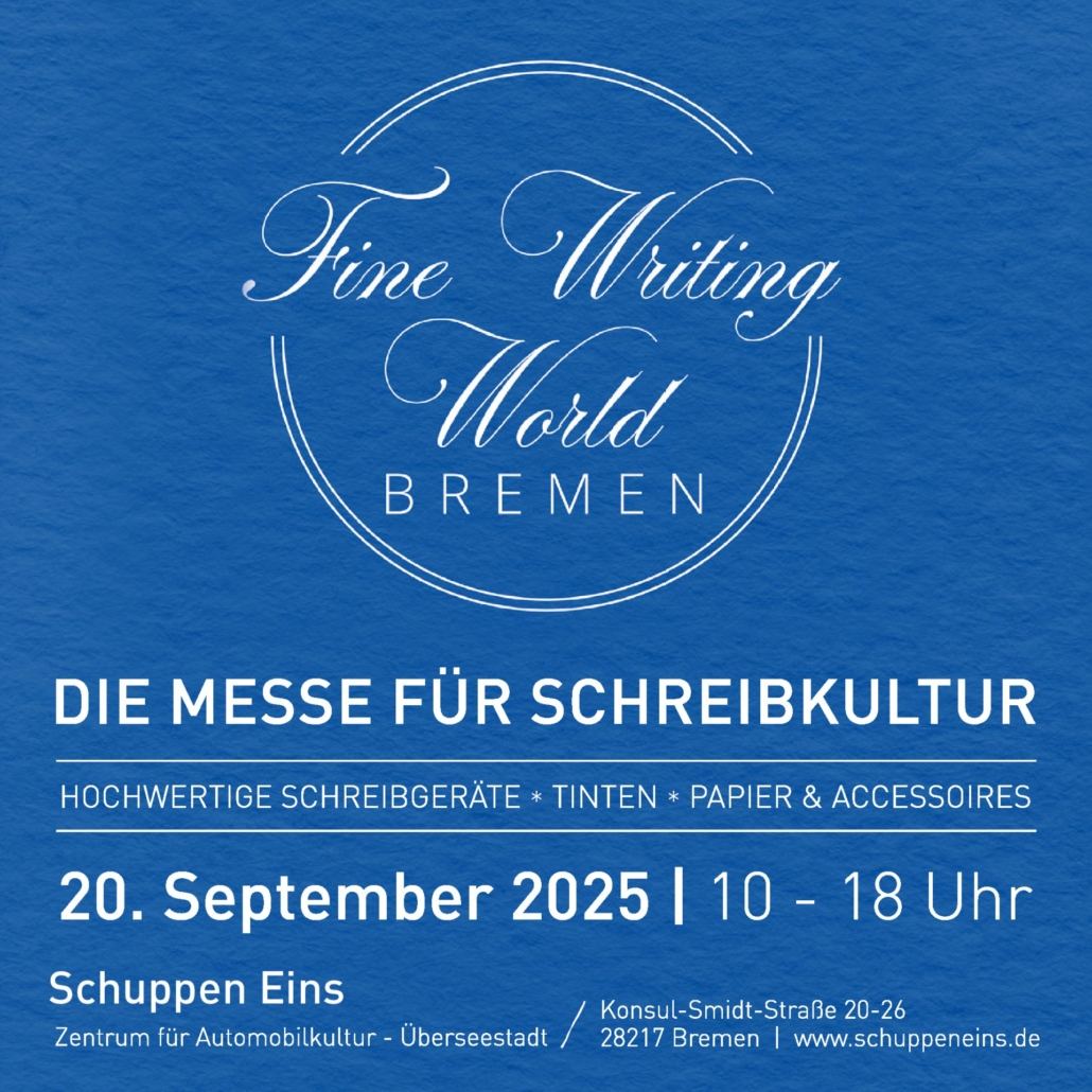 Am Samstag, den 20. September 2025 findet von 10.00 bis 18.00 Uhr im Schuppen Eins die erste Ausgabe der Fine Writing World Bremen statt. Die Messe richtet sich an alle, die hochwertige Schreibkultur lieben – von Füllfederhaltern über Tinte bis zu Papier und stilvollen Accessoires.